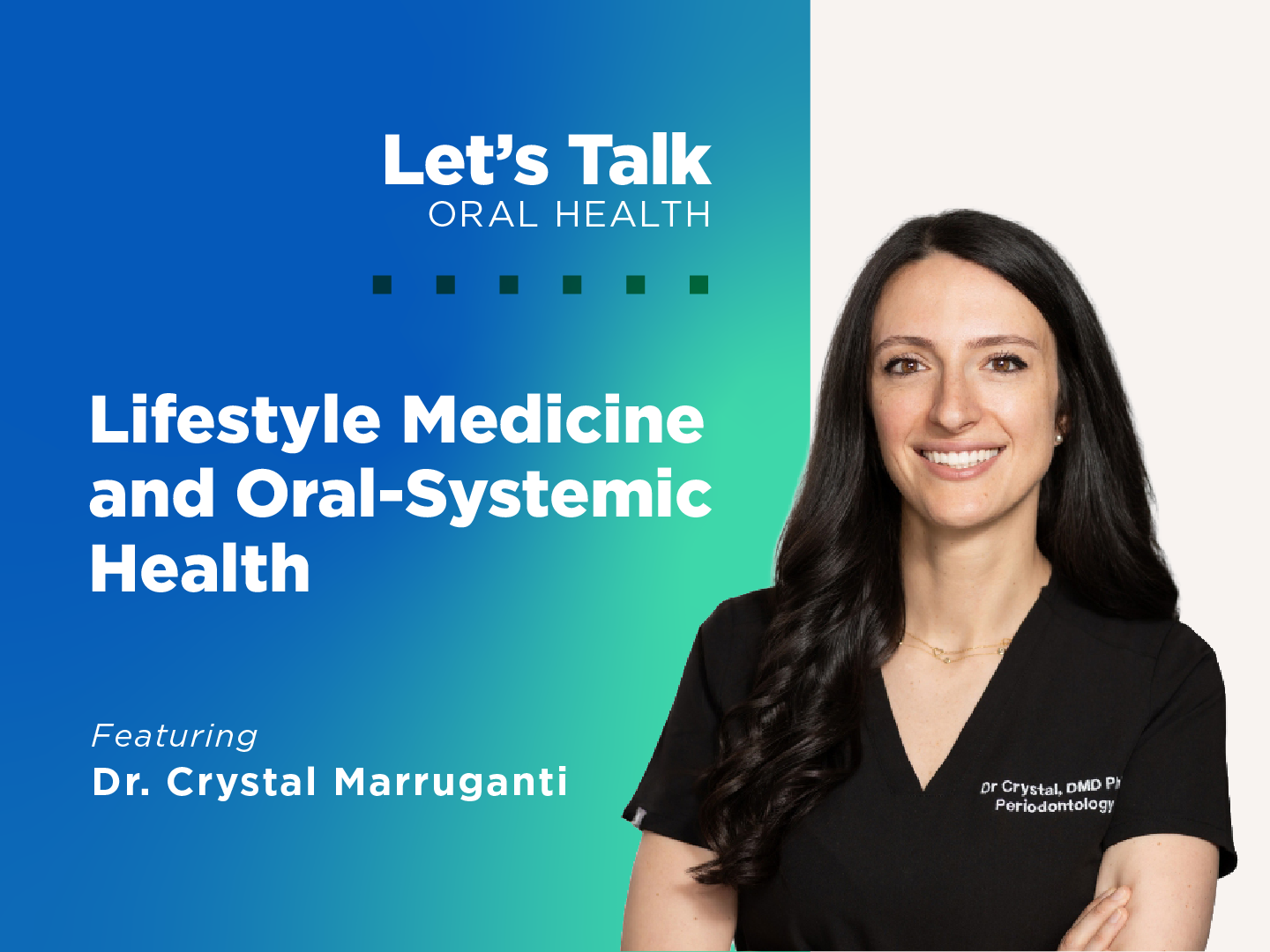 Listen to the full episode of Let's Talk Oral Health to hear Dr. Crystal Marruganti share more insights on lifestyle, prevention, and the evolving science of oral-systemic health.