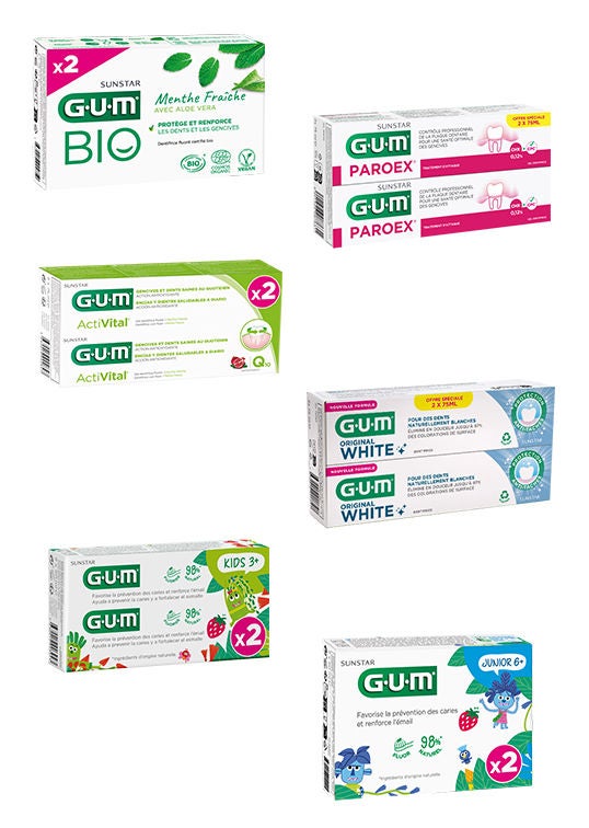 6 références de dentifrices GUM sont disponibles en format DUO :